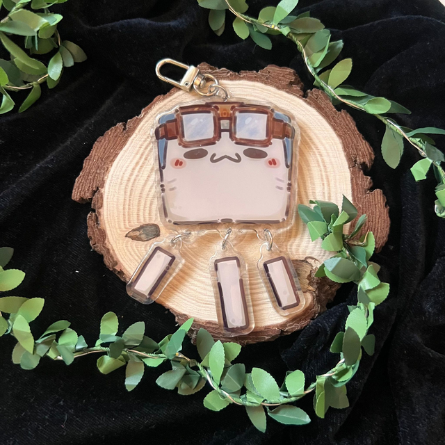 Llavero de 7 cm en material acrílico con la capa delantera recubierta de epoxy. El llavero consta de una pieza principal y tres acrilicos enganchados (patitas).